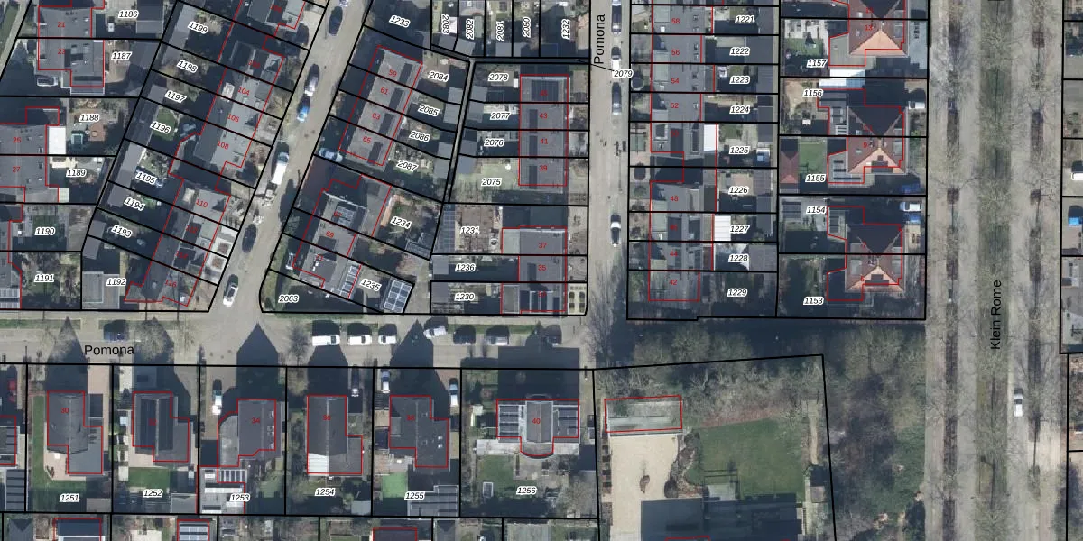 Het perceel waarop Pomona 35 staat heeft een oppervlakte van 310 m². Dit is een groot perceel. De perceeloppervlakte wordt geregistreerd door het Kadaster. Gedetailleerde informatie over de maten van dit perceel kunt u vinden in het rapport Kadastrale kaart met maatvoering van Pomona 35.
