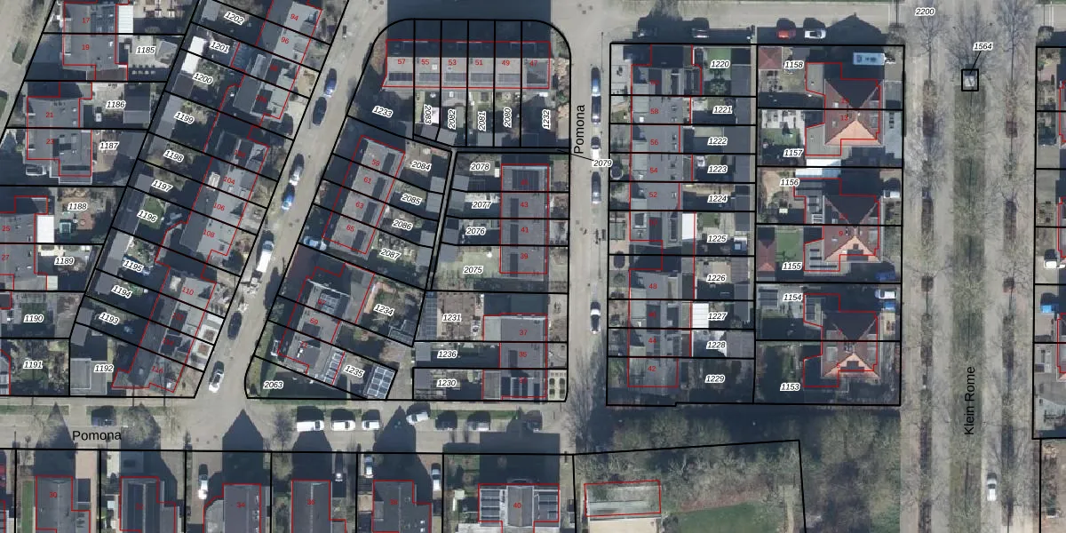 Het perceel waarop Pomona 39 staat heeft een oppervlakte van 217 m². Dit is een middelgroot perceel. De perceeloppervlakte wordt geregistreerd door het Kadaster. Gedetailleerde informatie over de maten van dit perceel kunt u vinden in het rapport Kadastrale kaart met maatvoering van Pomona 39.