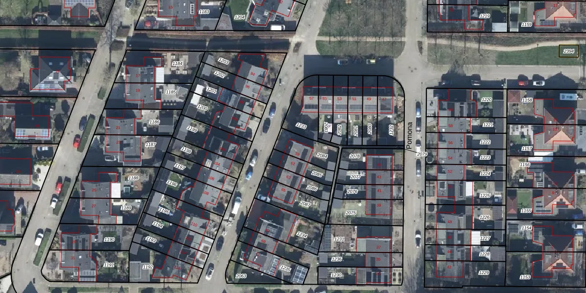 Het perceel waarop Pomona 59 staat heeft een oppervlakte van 168 m². Dit is een middelgroot perceel. De perceeloppervlakte wordt geregistreerd door het Kadaster. Gedetailleerde informatie over de maten van dit perceel kunt u vinden in het rapport Kadastrale kaart met maatvoering van Pomona 59.