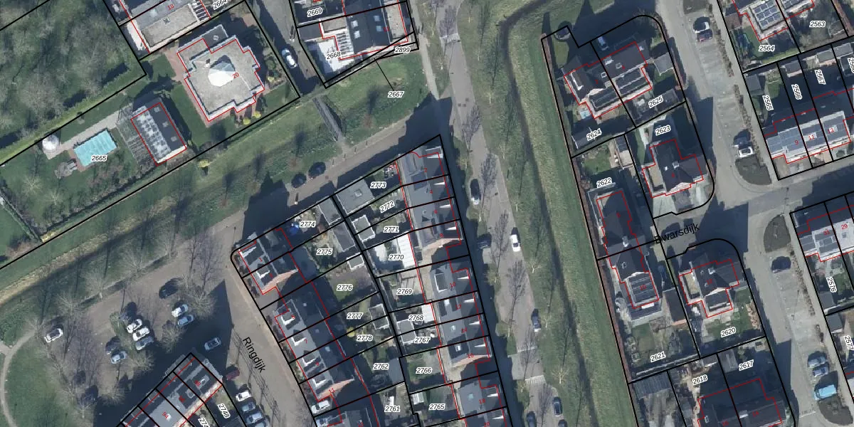 Gebruik de zoekbalk of klik op een perceel voor informatie over de adressen binnen dit perceel.