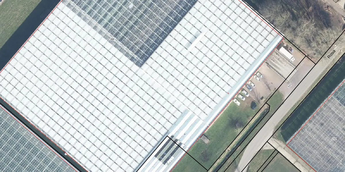 Het perceel waarop Rosa 3 staat heeft een oppervlakte van 2,5 ha. Dit is een zeer groot perceel. De perceeloppervlakte wordt geregistreerd door het Kadaster. Gedetailleerde informatie over de maten van dit perceel kunt u vinden in het rapport Kadastrale kaart met maatvoering van Rosa 3.