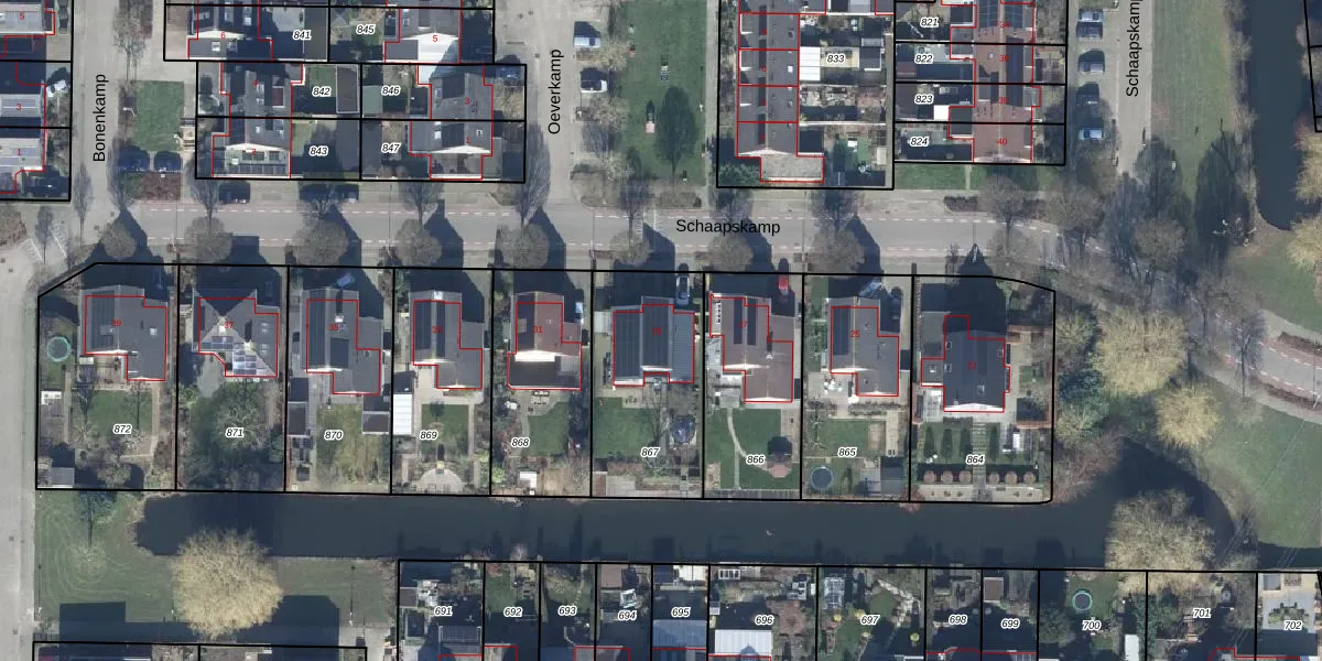 Het perceel waarop Schaapskamp 29 staat heeft een oppervlakte van 581 m². Dit is een groot perceel. De perceeloppervlakte wordt geregistreerd door het Kadaster. Gedetailleerde informatie over de maten van dit perceel kunt u vinden in het rapport Kadastrale kaart met maatvoering van Schaapskamp 29.