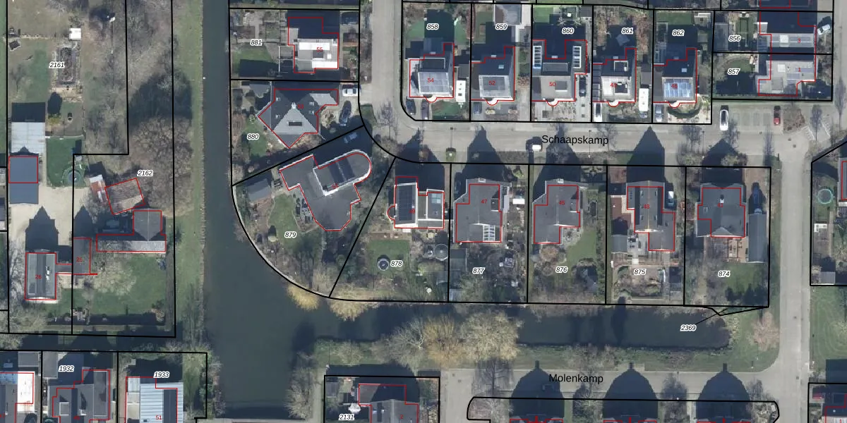 Het perceel waarop Schaapskamp 49 staat heeft een oppervlakte van 692 m². Dit is een groot perceel. De perceeloppervlakte wordt geregistreerd door het Kadaster. Gedetailleerde informatie over de maten van dit perceel kunt u vinden in het rapport Kadastrale kaart met maatvoering van Schaapskamp 49.