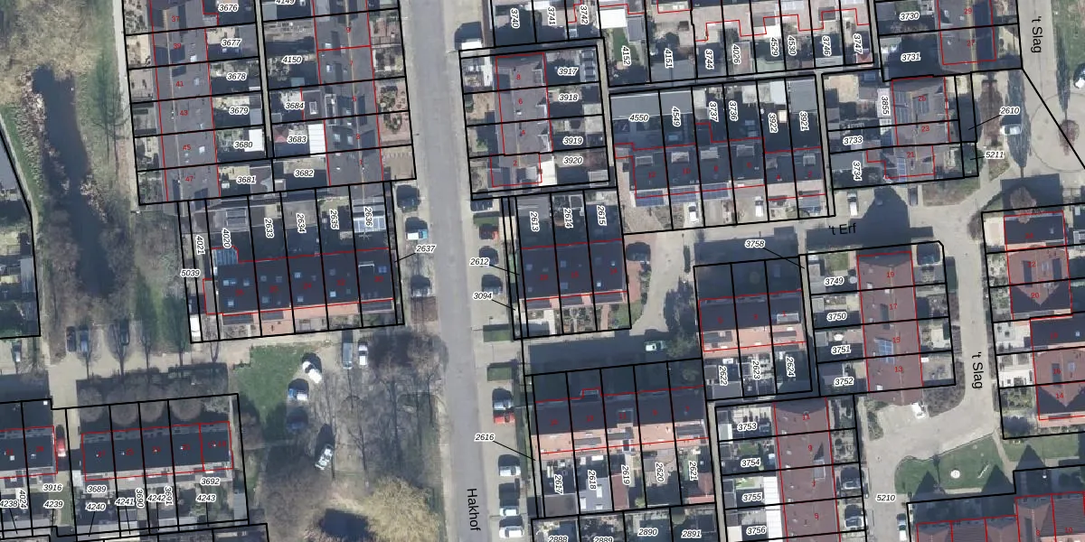 Het perceel waarop 't Erf 18 staat heeft een oppervlakte van 168 m². Dit is een middelgroot perceel. De perceeloppervlakte wordt geregistreerd door het Kadaster. Gedetailleerde informatie over de maten van dit perceel kunt u vinden in het rapport Kadastrale kaart met maatvoering van 't Erf 18.