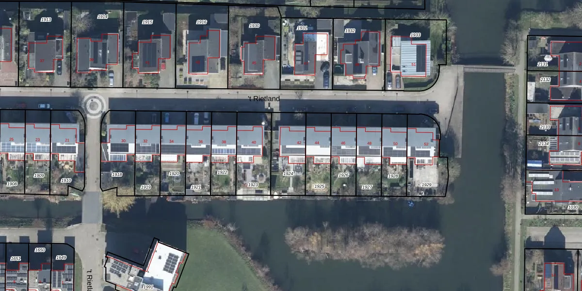 Het perceel waarop 't Rietland 42 staat heeft een oppervlakte van 340 m². Dit is een groot perceel. De perceeloppervlakte wordt geregistreerd door het Kadaster. Gedetailleerde informatie over de maten van dit perceel kunt u vinden in het rapport Kadastrale kaart met maatvoering van 't Rietland 42.