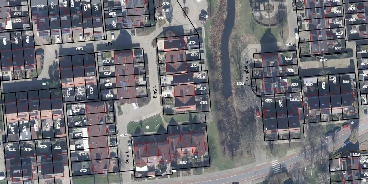 Het perceel waarop 't Slag 16 staat heeft een oppervlakte van 162 m². Dit is een middelgroot perceel. De perceeloppervlakte wordt geregistreerd door het Kadaster. Gedetailleerde informatie over de maten van dit perceel kunt u vinden in het rapport Kadastrale kaart met maatvoering van 't Slag 16.