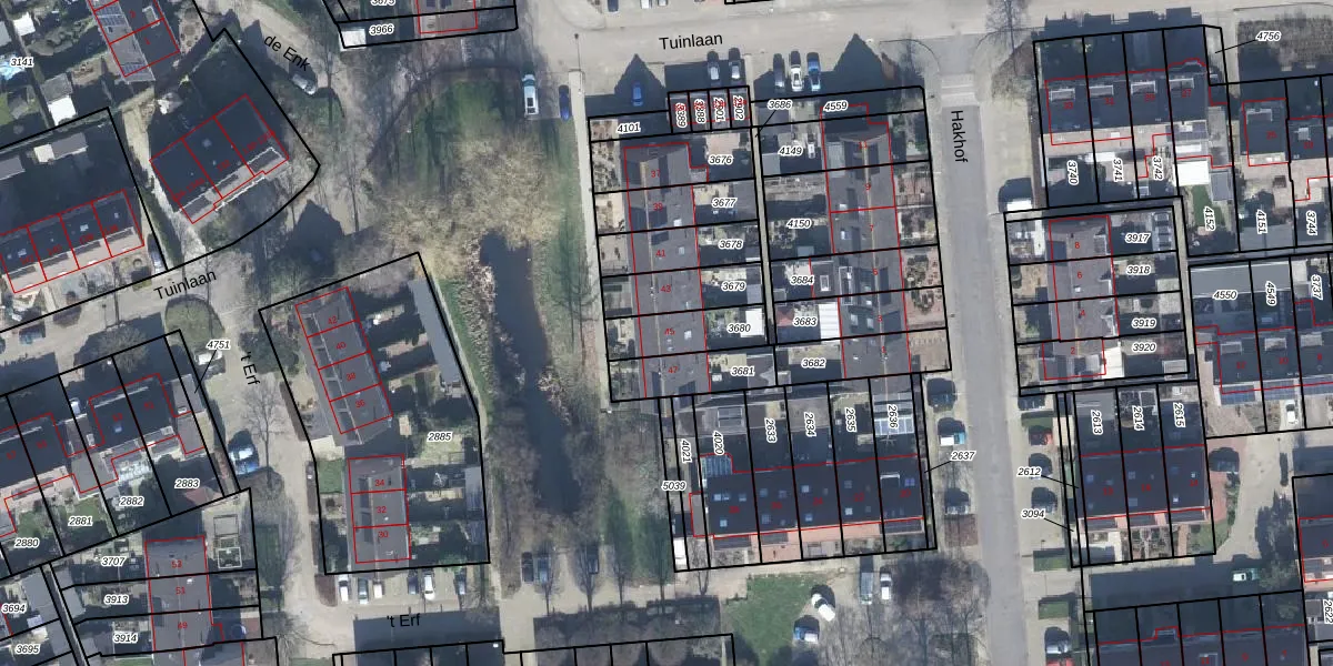 Gebruik de zoekbalk of klik op een perceel voor informatie over de adressen binnen dit perceel.