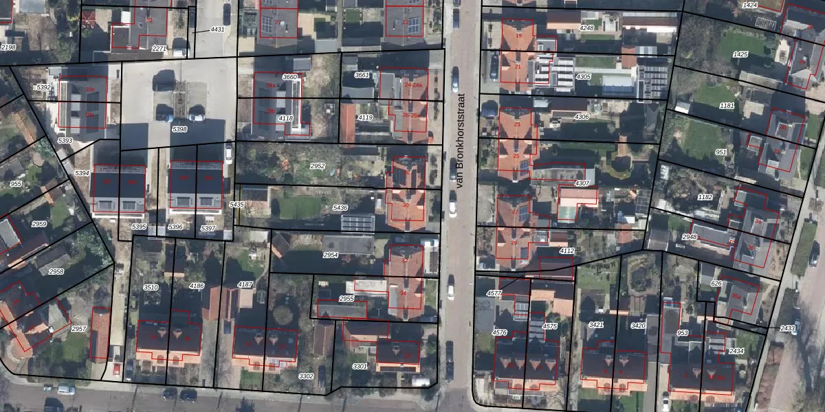 Het perceel waarop van Bronkhorststraat 30 staat heeft een oppervlakte van 526 m². Dit is een groot perceel. De perceeloppervlakte wordt geregistreerd door het Kadaster. Gedetailleerde informatie over de maten van dit perceel kunt u vinden in het rapport Kadastrale kaart met maatvoering van van Bronkhorststraat 30.