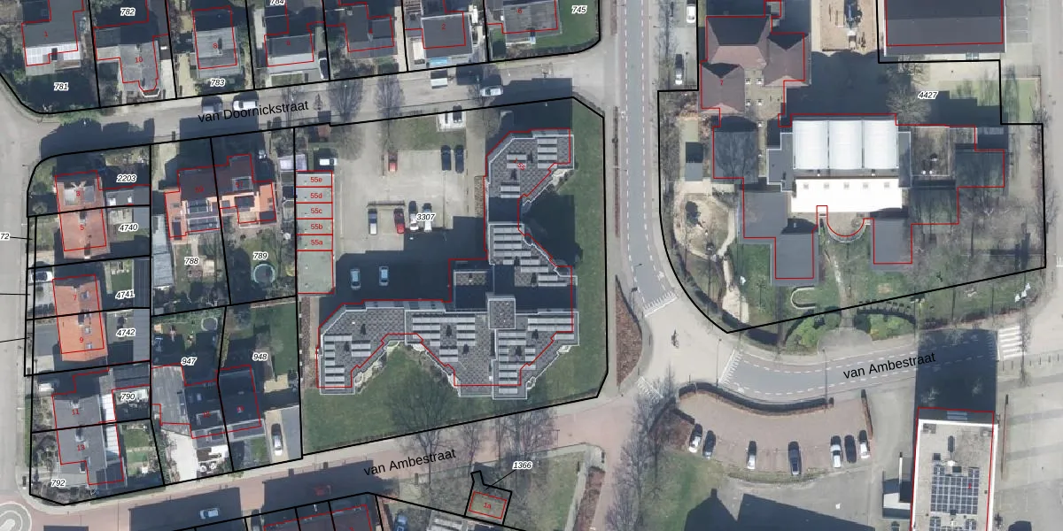Het perceel waarop van Doornickstraat 7 staat heeft een oppervlakte van 3425 m². Dit is een zeer groot perceel. De perceeloppervlakte wordt geregistreerd door het Kadaster. Gedetailleerde informatie over de maten van dit perceel kunt u vinden in het rapport Kadastrale kaart met maatvoering van van Doornickstraat 7.