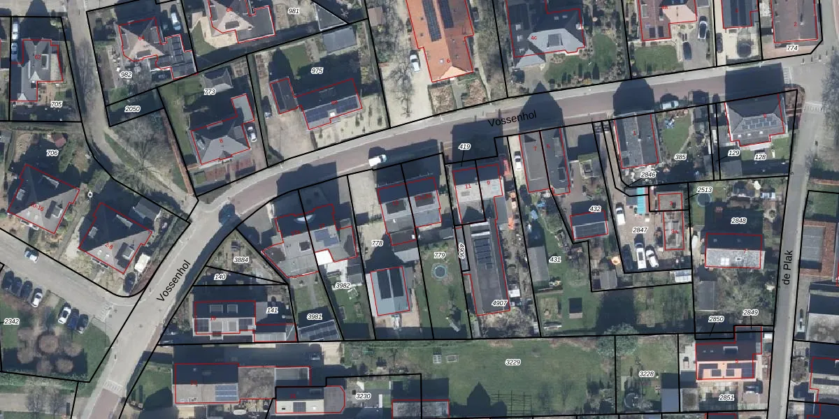 Het perceel waarop Vossenhol 13-a staat heeft een oppervlakte van 405 m². Dit is een groot perceel. De perceeloppervlakte wordt geregistreerd door het Kadaster. Gedetailleerde informatie over de maten van dit perceel kunt u vinden in het rapport Kadastrale kaart met maatvoering van Vossenhol 13-a.