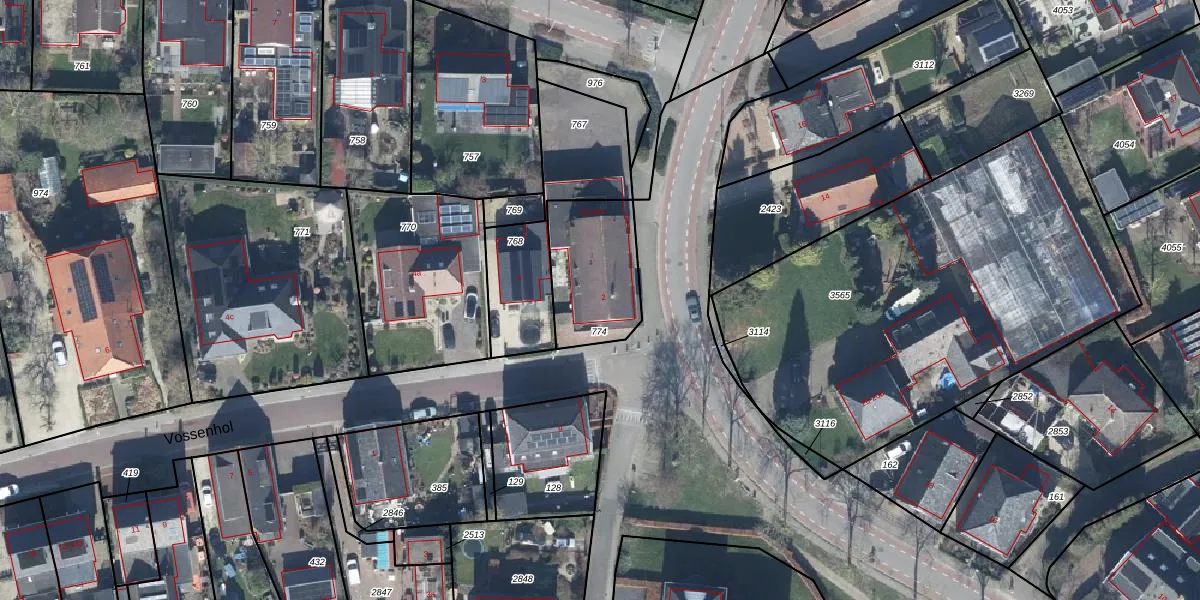 Het perceel waarop Vossenhol 2 staat heeft een oppervlakte van 343 m². Dit is een groot perceel. De perceeloppervlakte wordt geregistreerd door het Kadaster. Gedetailleerde informatie over de maten van dit perceel kunt u vinden in het rapport Kadastrale kaart met maatvoering van Vossenhol 2.