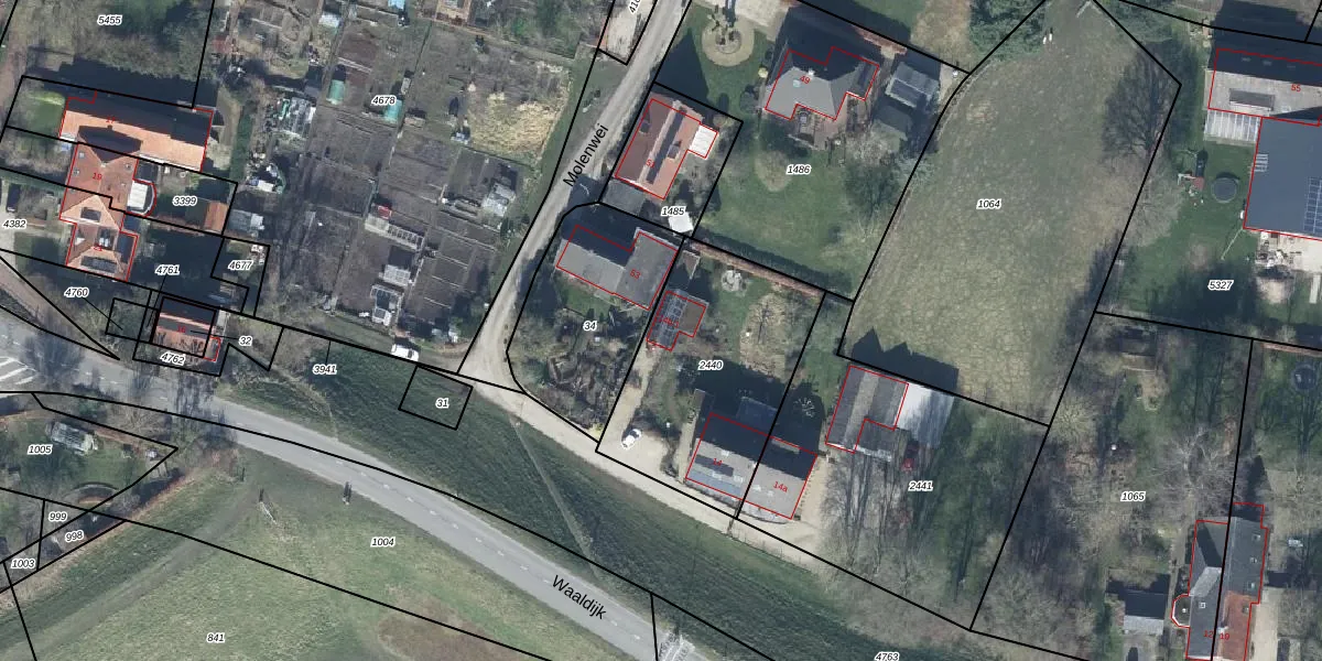 Het perceel waarop Waaldijk 14-b-1 staat heeft een oppervlakte van 839 m². Dit is een groot perceel. De perceeloppervlakte wordt geregistreerd door het Kadaster. Gedetailleerde informatie over de maten van dit perceel kunt u vinden in het rapport Kadastrale kaart met maatvoering van Waaldijk 14-b-1.