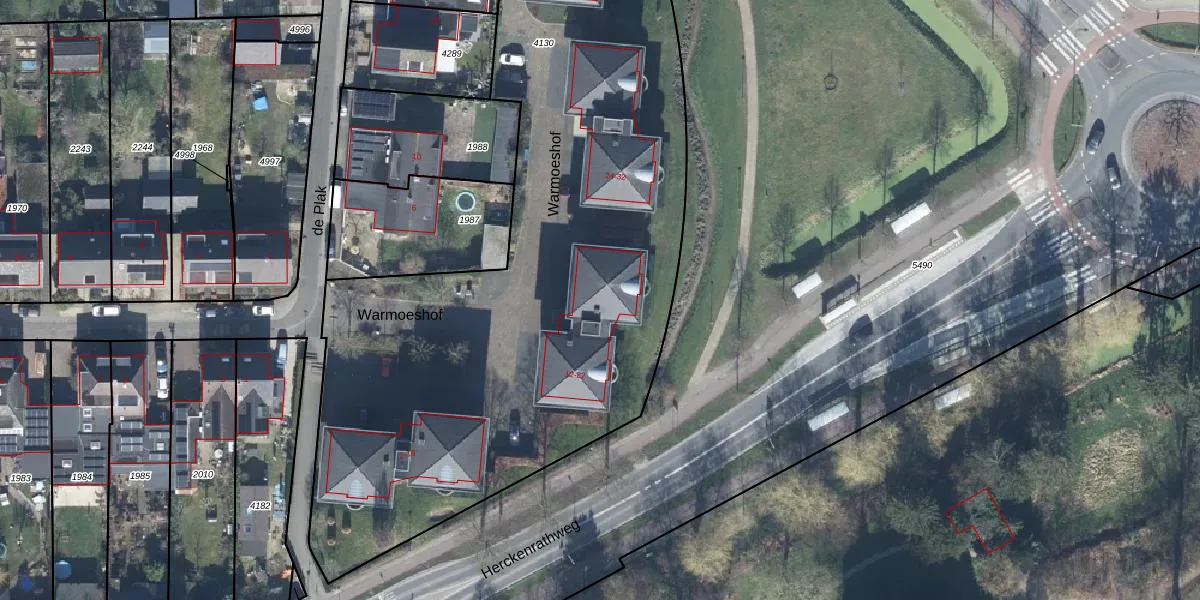 Het perceel waarop Warmoeshof 18 staat heeft een oppervlakte van 5180 m². Dit is een zeer groot perceel. De perceeloppervlakte wordt geregistreerd door het Kadaster. Gedetailleerde informatie over de maten van dit perceel kunt u vinden in het rapport Kadastrale kaart met maatvoering van Warmoeshof 18.
