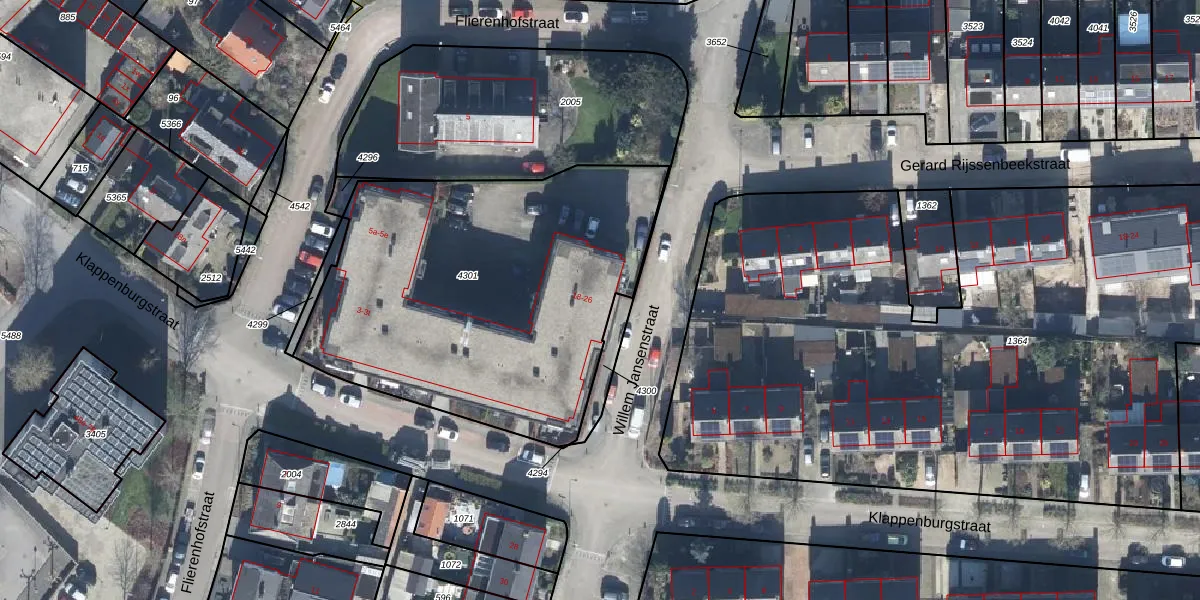 Het perceel waarop Willem Jansenstraat 18 staat heeft een oppervlakte van 1975 m². Dit is een zeer groot perceel. De perceeloppervlakte wordt geregistreerd door het Kadaster. Gedetailleerde informatie over de maten van dit perceel kunt u vinden in het rapport Kadastrale kaart met maatvoering van Willem Jansenstraat 18.