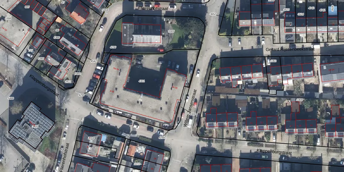 Het perceel waarop Willem Jansenstraat 22 staat heeft een oppervlakte van 1975 m². Dit is een zeer groot perceel. De perceeloppervlakte wordt geregistreerd door het Kadaster. Gedetailleerde informatie over de maten van dit perceel kunt u vinden in het rapport Kadastrale kaart met maatvoering van Willem Jansenstraat 22.