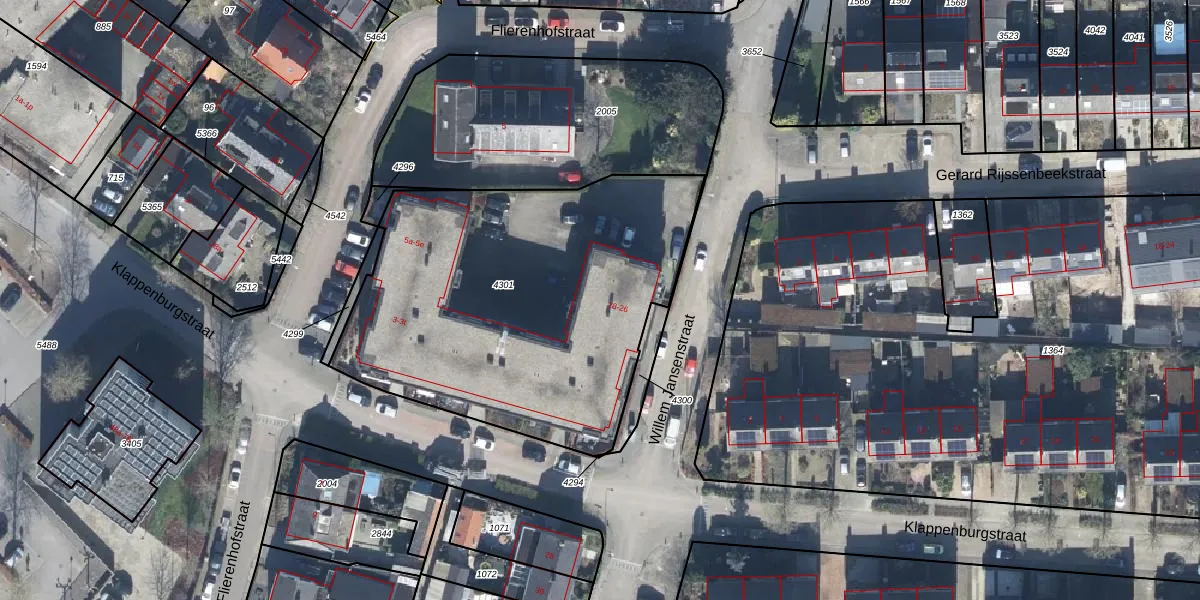 Het perceel waarop Willem Jansenstraat 24 staat heeft een oppervlakte van 1975 m². Dit is een zeer groot perceel. De perceeloppervlakte wordt geregistreerd door het Kadaster. Gedetailleerde informatie over de maten van dit perceel kunt u vinden in het rapport Kadastrale kaart met maatvoering van Willem Jansenstraat 24.
