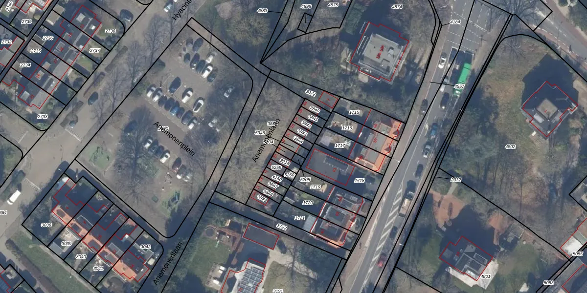 Het perceel waarop Anemonenlaan 2-f staat heeft een oppervlakte van 32 m². Dit is een klein perceel. De perceeloppervlakte wordt geregistreerd door het Kadaster. Gedetailleerde informatie over de maten van dit perceel kunt u vinden in het rapport Kadastrale kaart met maatvoering van Anemonenlaan 2-f.