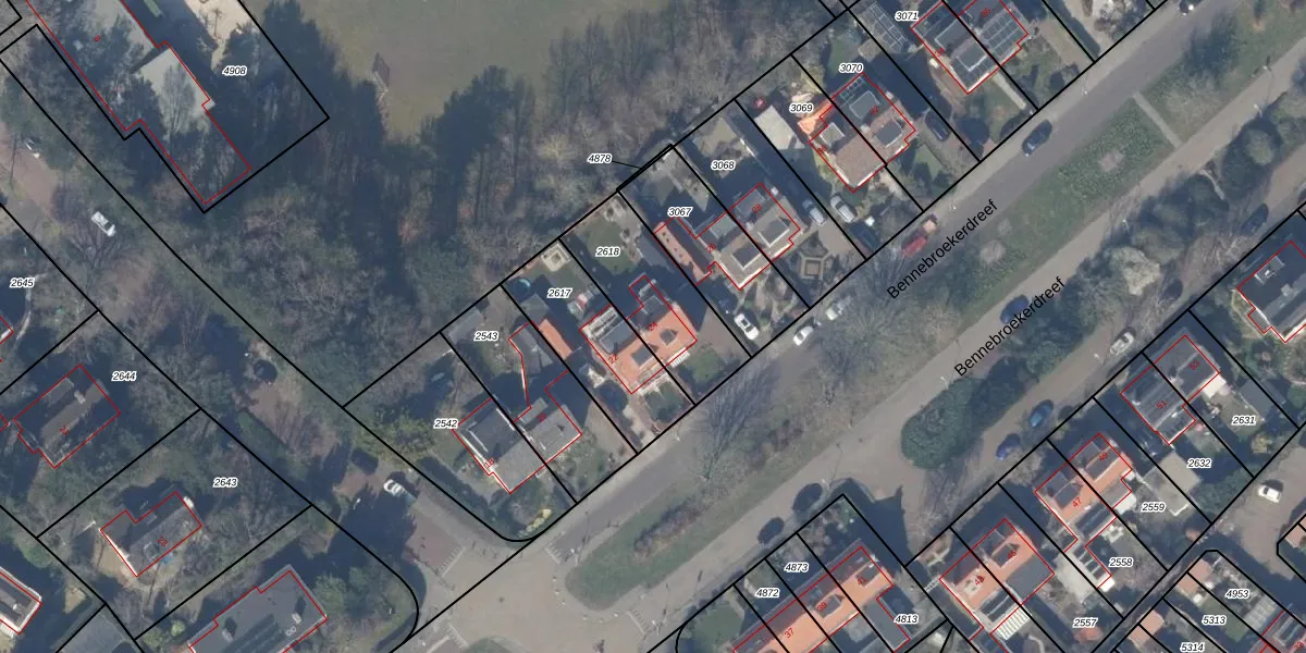 Gebruik de zoekbalk of klik op een perceel voor informatie over de adressen binnen dit perceel.