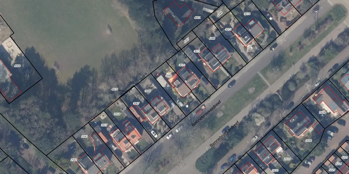 Bennebroekerdreef 30 is gelegen op kadastraal perceel BNB00A3069. Deze kadastrale aanduiding is uniek en wordt gebruikt door het Kadaster om eigendomsrechten en andere zakelijke rechten vast te leggen. Het perceel maakt onderdeel uit van de kadastrale gemeente Bennebroek.