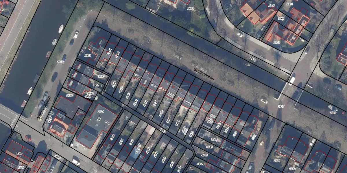 Gebruik de zoekbalk of klik op een perceel voor informatie over de adressen binnen dit perceel.