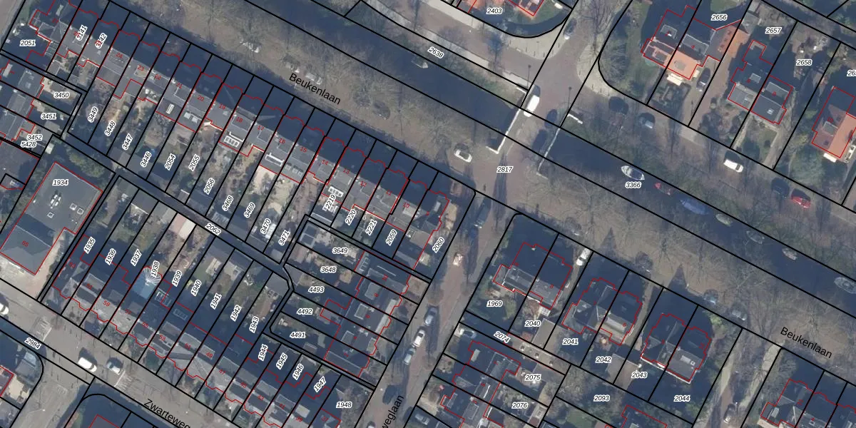 Gebruik de zoekbalk of klik op een perceel voor informatie over de adressen binnen dit perceel.