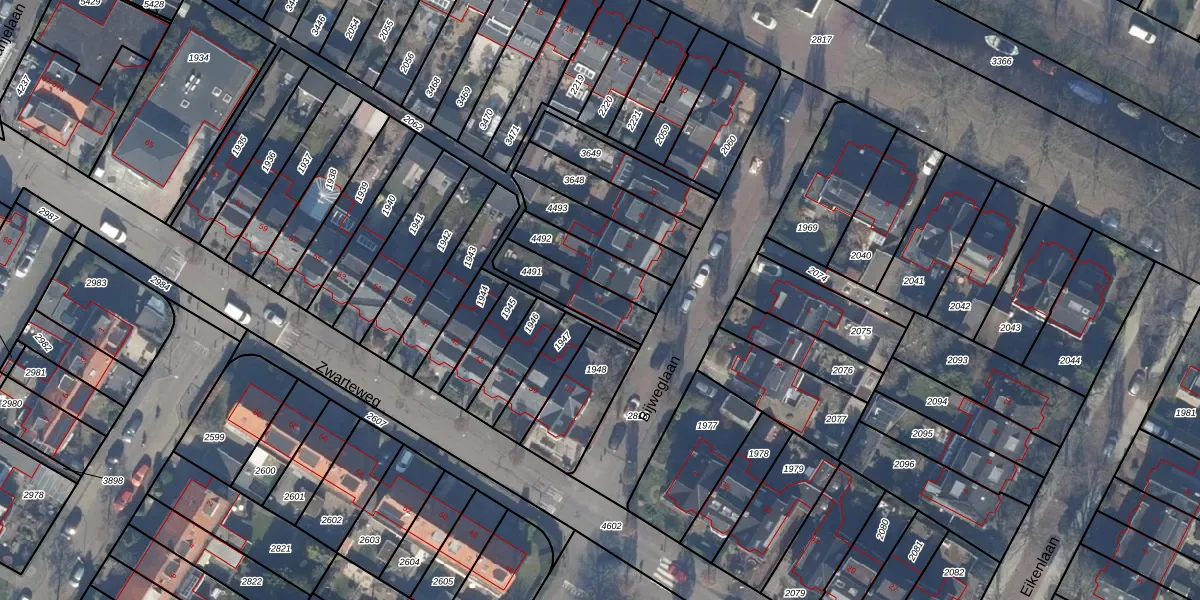 Gebruik de zoekbalk of klik op een perceel voor informatie over de adressen binnen dit perceel.