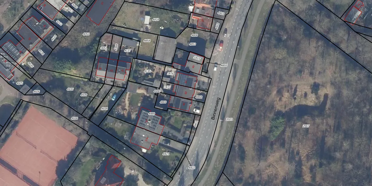 Binnenweg 53 is gelegen op kadastraal perceel BNB00A1477. Deze kadastrale aanduiding is uniek en wordt gebruikt door het Kadaster om eigendomsrechten en andere zakelijke rechten vast te leggen. Het perceel maakt onderdeel uit van de kadastrale gemeente Bennebroek.