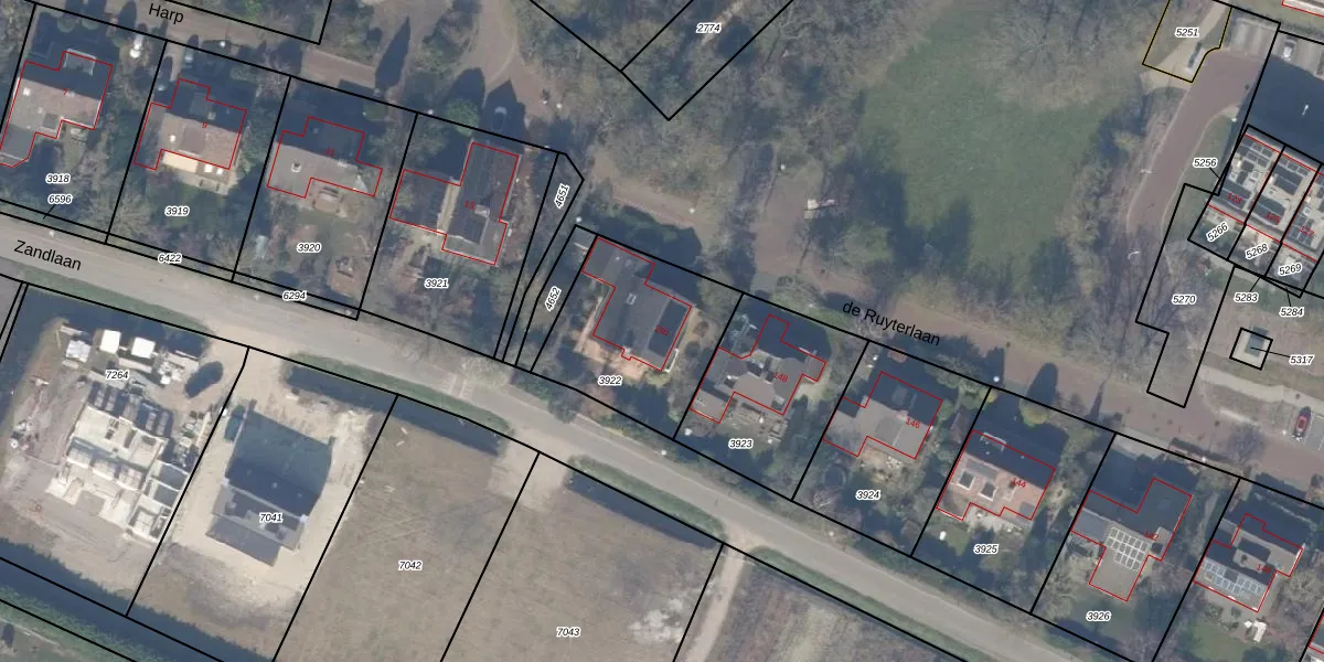 Het perceel waarop de Ruyterlaan 150 staat heeft een oppervlakte van 554 m². Dit is een groot perceel. De perceeloppervlakte wordt geregistreerd door het Kadaster. Gedetailleerde informatie over de maten van dit perceel kunt u vinden in het rapport Kadastrale kaart met maatvoering van de Ruyterlaan 150.