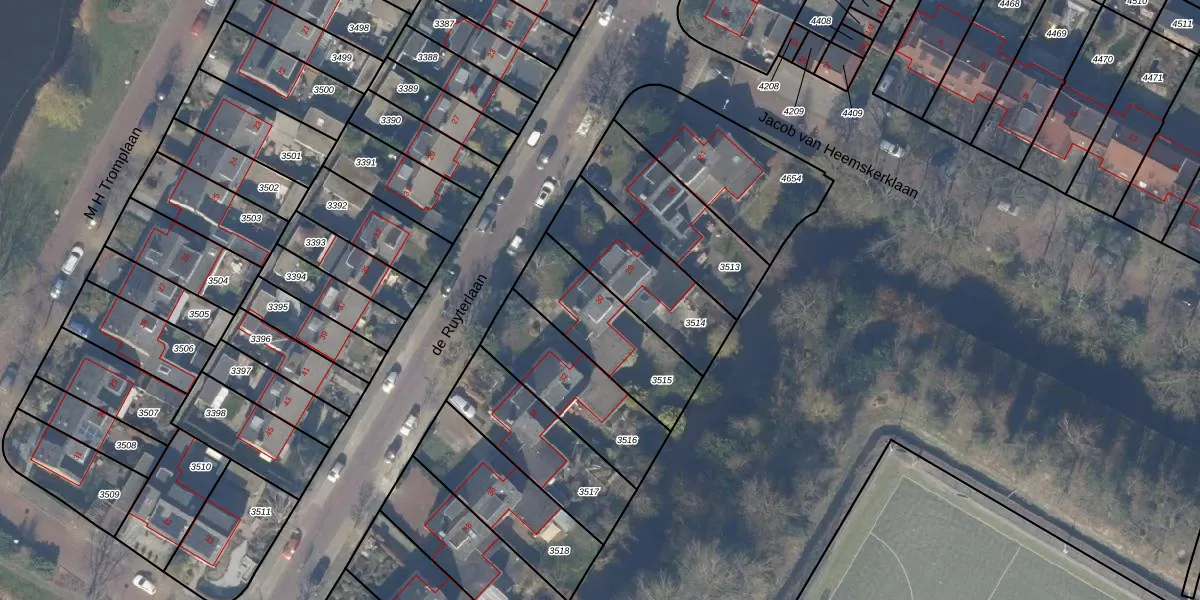 de Ruyterlaan 30 is gelegen op kadastraal perceel BNB00A3515. Deze kadastrale aanduiding is uniek en wordt gebruikt door het Kadaster om eigendomsrechten en andere zakelijke rechten vast te leggen. Het perceel maakt onderdeel uit van de kadastrale gemeente Bennebroek.