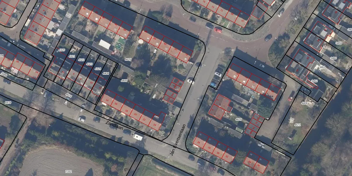 Het perceel waarop de Ruyterlaan 80-a staat heeft een oppervlakte van 4421 m². Dit is een zeer groot perceel. De perceeloppervlakte wordt geregistreerd door het Kadaster. Gedetailleerde informatie over de maten van dit perceel kunt u vinden in het rapport Kadastrale kaart met maatvoering van de Ruyterlaan 80-a.