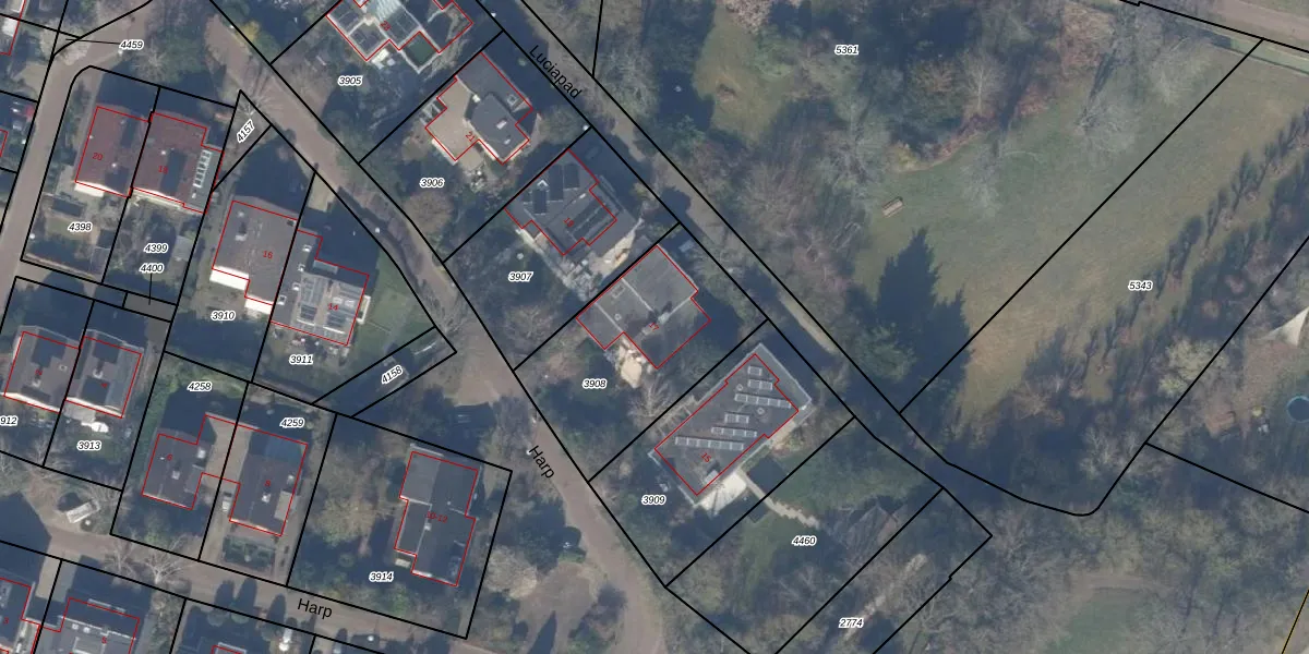 Het perceel waarop Harp 17 staat heeft een oppervlakte van 709 m². Dit is een groot perceel. De perceeloppervlakte wordt geregistreerd door het Kadaster. Gedetailleerde informatie over de maten van dit perceel kunt u vinden in het rapport Kadastrale kaart met maatvoering van Harp 17.