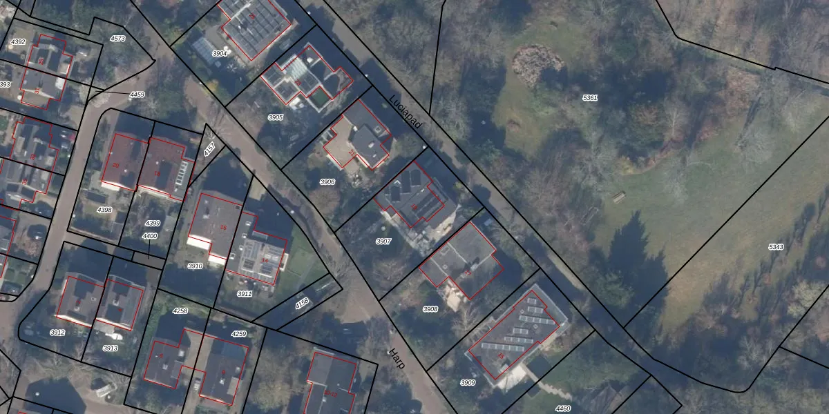 Het perceel waarop Harp 19 staat heeft een oppervlakte van 645 m². Dit is een groot perceel. De perceeloppervlakte wordt geregistreerd door het Kadaster. Gedetailleerde informatie over de maten van dit perceel kunt u vinden in het rapport Kadastrale kaart met maatvoering van Harp 19.