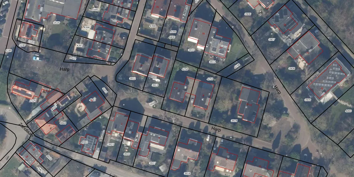Het perceel waarop Harp 6 staat heeft een oppervlakte van 400 m². Dit is een groot perceel. De perceeloppervlakte wordt geregistreerd door het Kadaster. Gedetailleerde informatie over de maten van dit perceel kunt u vinden in het rapport Kadastrale kaart met maatvoering van Harp 6.