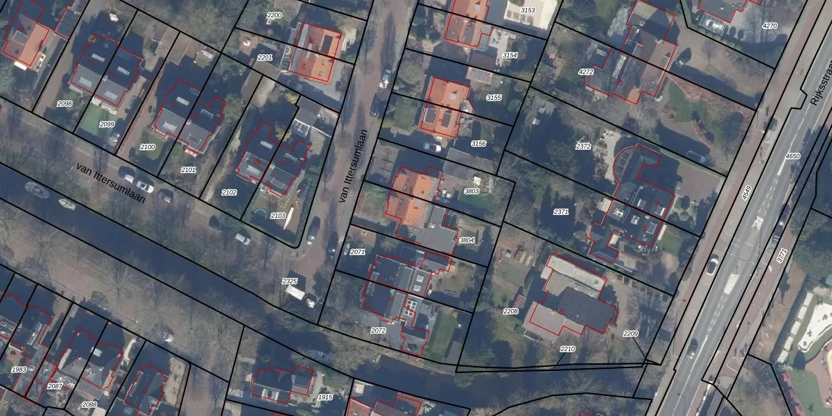 Het perceel waarop van Ittersumlaan 5 staat heeft een oppervlakte van 371 m². Dit is een groot perceel. De perceeloppervlakte wordt geregistreerd door het Kadaster. Gedetailleerde informatie over de maten van dit perceel kunt u vinden in het rapport Kadastrale kaart met maatvoering van van Ittersumlaan 5.