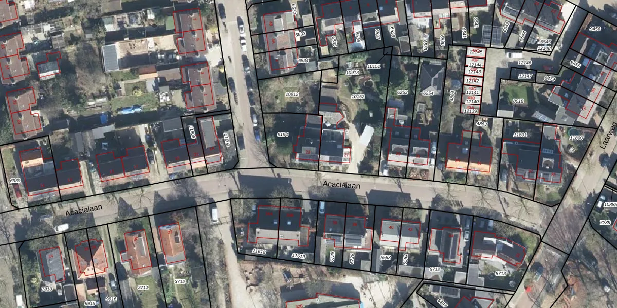 Het perceel waarop Acacialaan 23 staat heeft een oppervlakte van 313 m². Dit is een groot perceel. De perceeloppervlakte wordt geregistreerd door het Kadaster. Gedetailleerde informatie over de maten van dit perceel kunt u vinden in het rapport Kadastrale kaart met maatvoering van Acacialaan 23.