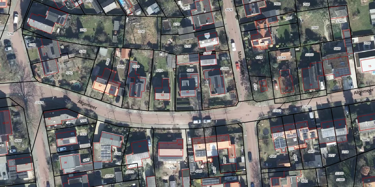 Het perceel waarop Algemeer 65 staat heeft een oppervlakte van 405 m². Dit is een groot perceel. De perceeloppervlakte wordt geregistreerd door het Kadaster. Gedetailleerde informatie over de maten van dit perceel kunt u vinden in het rapport Kadastrale kaart met maatvoering van Algemeer 65.