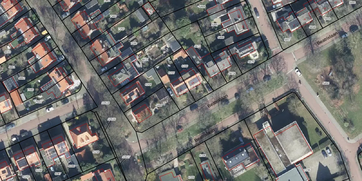Beatrixlaan 1 is gelegen op kadastraal perceel BNK01E6165. Deze kadastrale aanduiding is uniek en wordt gebruikt door het Kadaster om eigendomsrechten en andere zakelijke rechten vast te leggen. Het perceel maakt onderdeel uit van de kadastrale gemeente Bennekom.