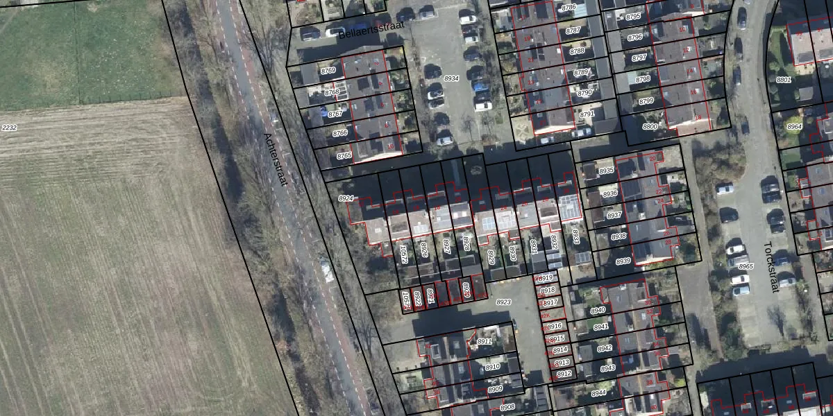 Bellaertsstraat 16 is gelegen op kadastraal perceel BNK01E8926. Deze kadastrale aanduiding is uniek en wordt gebruikt door het Kadaster om eigendomsrechten en andere zakelijke rechten vast te leggen. Het perceel maakt onderdeel uit van de kadastrale gemeente Bennekom.