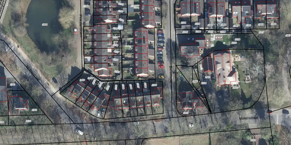 Het perceel waarop Bereklauw 1 staat heeft een oppervlakte van 2420 m². Dit is een zeer groot perceel. De perceeloppervlakte wordt geregistreerd door het Kadaster. Gedetailleerde informatie over de maten van dit perceel kunt u vinden in het rapport Kadastrale kaart met maatvoering van Bereklauw 1.