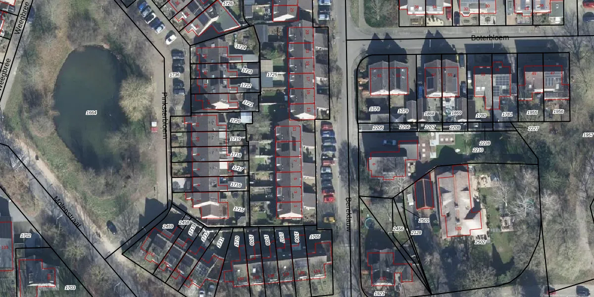 Het perceel waarop Bereklauw 9 staat heeft een oppervlakte van 2420 m². Dit is een zeer groot perceel. De perceeloppervlakte wordt geregistreerd door het Kadaster. Gedetailleerde informatie over de maten van dit perceel kunt u vinden in het rapport Kadastrale kaart met maatvoering van Bereklauw 9.
