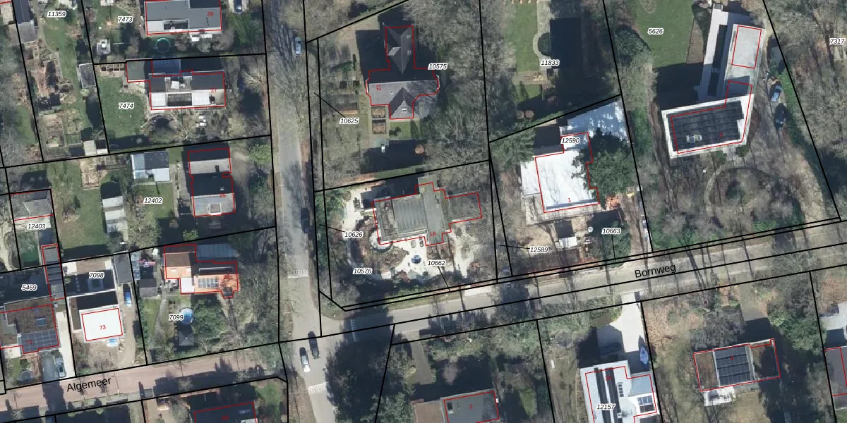 Het perceel waarop Bornweg 1-A staat heeft een oppervlakte van 1115 m². Dit is een zeer groot perceel. De perceeloppervlakte wordt geregistreerd door het Kadaster. Gedetailleerde informatie over de maten van dit perceel kunt u vinden in het rapport Kadastrale kaart met maatvoering van Bornweg 1-A.