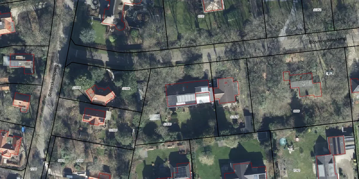 Het perceel waarop Bosmeesterskamp 2 staat heeft een oppervlakte van 1680 m². Dit is een zeer groot perceel. De perceeloppervlakte wordt geregistreerd door het Kadaster. Gedetailleerde informatie over de maten van dit perceel kunt u vinden in het rapport Kadastrale kaart met maatvoering van Bosmeesterskamp 2.