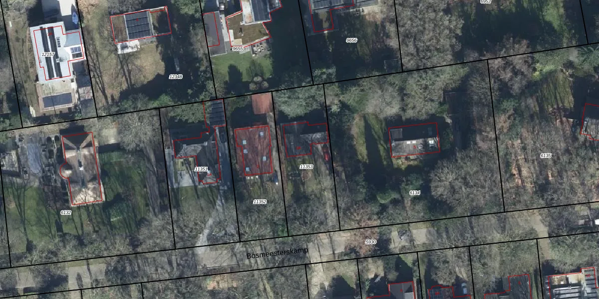 Het perceel waarop Bosmeesterskamp 3-A staat heeft een oppervlakte van 855 m². Dit is een groot perceel. De perceeloppervlakte wordt geregistreerd door het Kadaster. Gedetailleerde informatie over de maten van dit perceel kunt u vinden in het rapport Kadastrale kaart met maatvoering van Bosmeesterskamp 3-A.