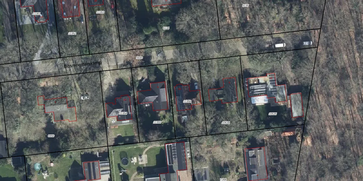 Het perceel waarop Bosmeesterskamp 6-A staat heeft een oppervlakte van 725 m². Dit is een groot perceel. De perceeloppervlakte wordt geregistreerd door het Kadaster. Gedetailleerde informatie over de maten van dit perceel kunt u vinden in het rapport Kadastrale kaart met maatvoering van Bosmeesterskamp 6-A.