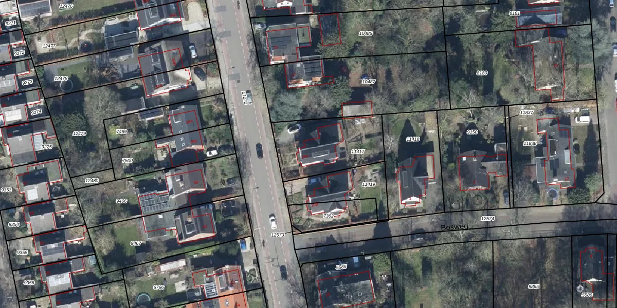 Gebruik de zoekbalk of klik op een perceel voor informatie over de adressen binnen dit perceel.