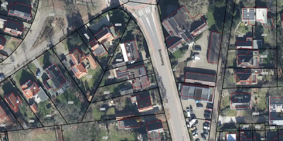 Het perceel waarop Bovenweg 4 staat heeft een oppervlakte van 385 m². Dit is een groot perceel. De perceeloppervlakte wordt geregistreerd door het Kadaster. Gedetailleerde informatie over de maten van dit perceel kunt u vinden in het rapport Kadastrale kaart met maatvoering van Bovenweg 4.