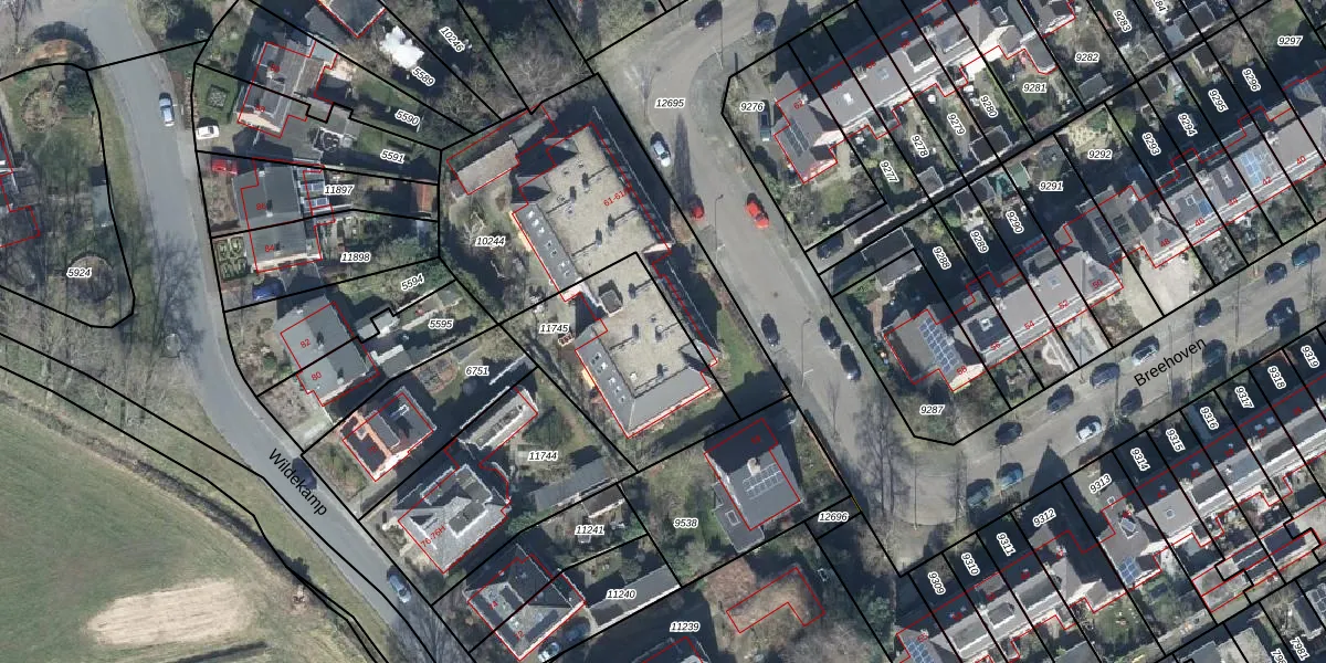Het perceel waarop Breehoven 61-11 staat heeft een oppervlakte van 605 m². Dit is een groot perceel. De perceeloppervlakte wordt geregistreerd door het Kadaster. Gedetailleerde informatie over de maten van dit perceel kunt u vinden in het rapport Kadastrale kaart met maatvoering van Breehoven 61-11.