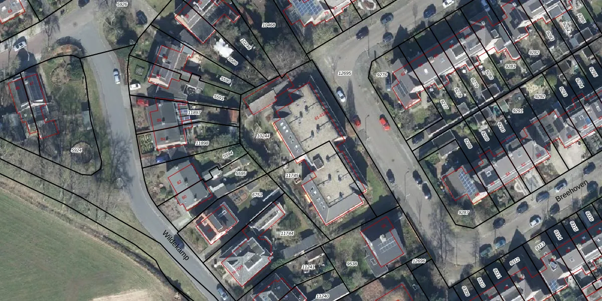 Het perceel waarop Breehoven 61-16 staat heeft een oppervlakte van 1091 m². Dit is een zeer groot perceel. De perceeloppervlakte wordt geregistreerd door het Kadaster. Gedetailleerde informatie over de maten van dit perceel kunt u vinden in het rapport Kadastrale kaart met maatvoering van Breehoven 61-16.