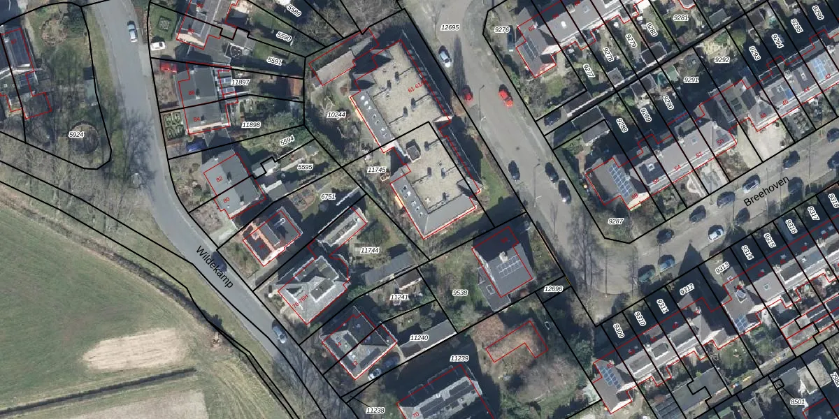 Het perceel waarop Breehoven 61-23 staat heeft een oppervlakte van 605 m². Dit is een groot perceel. De perceeloppervlakte wordt geregistreerd door het Kadaster. Gedetailleerde informatie over de maten van dit perceel kunt u vinden in het rapport Kadastrale kaart met maatvoering van Breehoven 61-23.