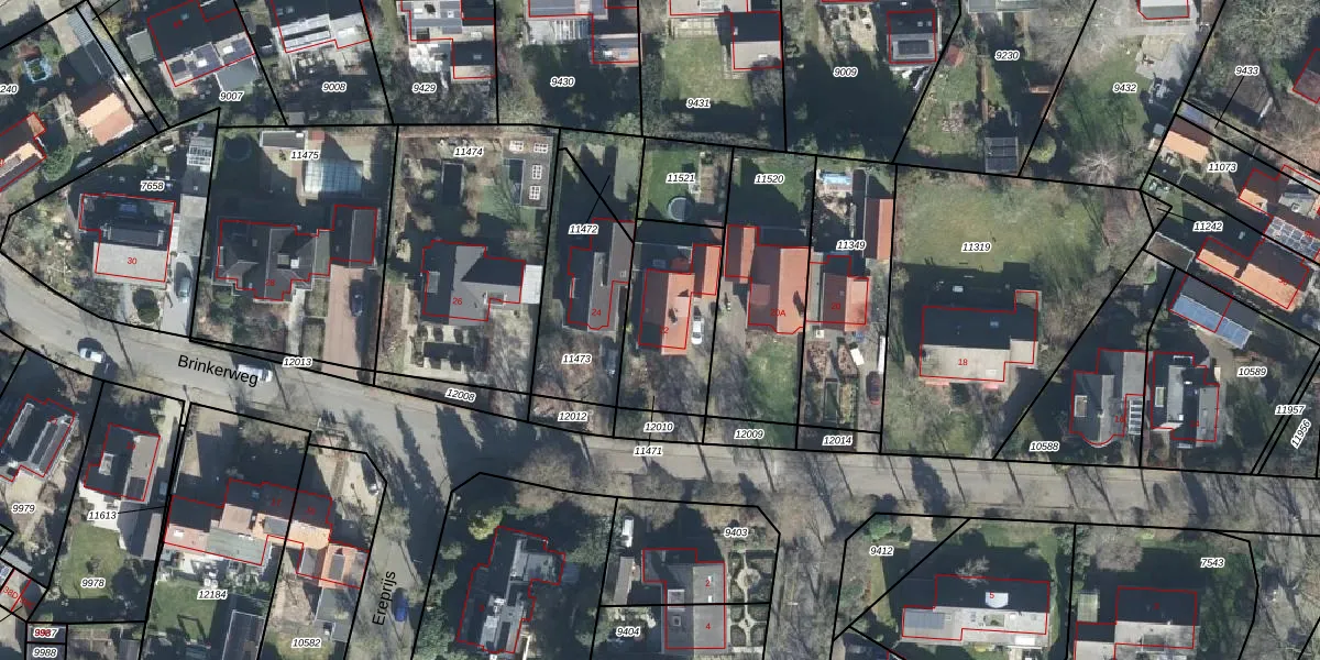 Het perceel waarop Brinkerweg 22 staat heeft een oppervlakte van 392 m². Dit is een groot perceel. De perceeloppervlakte wordt geregistreerd door het Kadaster. Gedetailleerde informatie over de maten van dit perceel kunt u vinden in het rapport Kadastrale kaart met maatvoering van Brinkerweg 22.